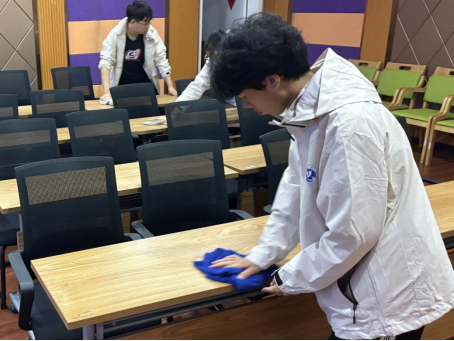 活动当天,志愿者们统一着装,精神饱满地抵达敬老院。在工作人员的安排下,大家迅速投入服务,分为清洁组与陪伴组,有序开展各项工作。清洁组同学细致擦拭窗台、桌椅,协助整理老人房间,过程中始终尊重老人意愿,轻手轻脚、不扰不乱,以真诚细致的劳动为老人们营造更加整洁舒适的居住环境。