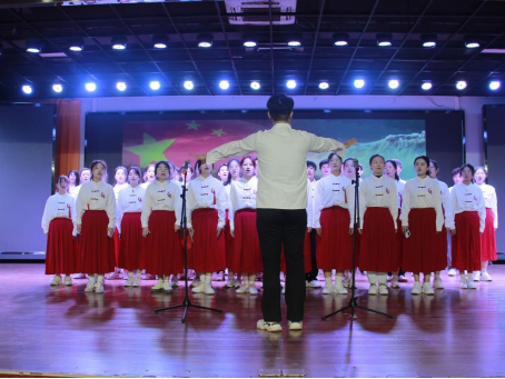 晚会尾声,温情与感动达到高潮。当《我爱你中国》的熟悉旋律响起,全体演职人员缓步登台,共同唱响对祖国的深情告白。台下师生深受感染,纷纷自发起身,加入合唱。激昂而深情的歌声汇聚成一片温暖的海洋,澎湃的爱国热情与浓厚的集体归属感在会场内久久回荡。